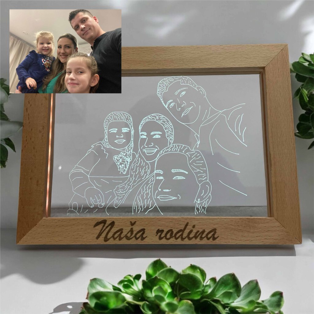 LED svietiaci fotorámik s gravírovanou fotkou na mieru. Unikátny darček s podsvietením, vyrobený z kvalitného akrylu. Personalizujte si vlastný dizajn.