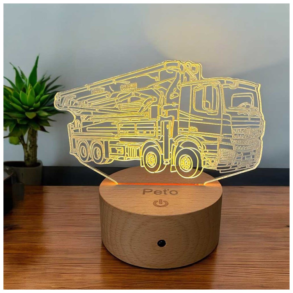 Táto LED lampa je unikátna svojim dizajnom, inšpirovaným realistickým obrysom nákladného vozidla Mercedes-Benz Arocs 3548 8×4 betónová pumpa. Je vyrobená s presnými detailmi, ktoré zachytávajú ikonické črty tohto modelu, ako je masívna maska chladiča, kabína s aerodynamickým tvarom a ochranný rám.