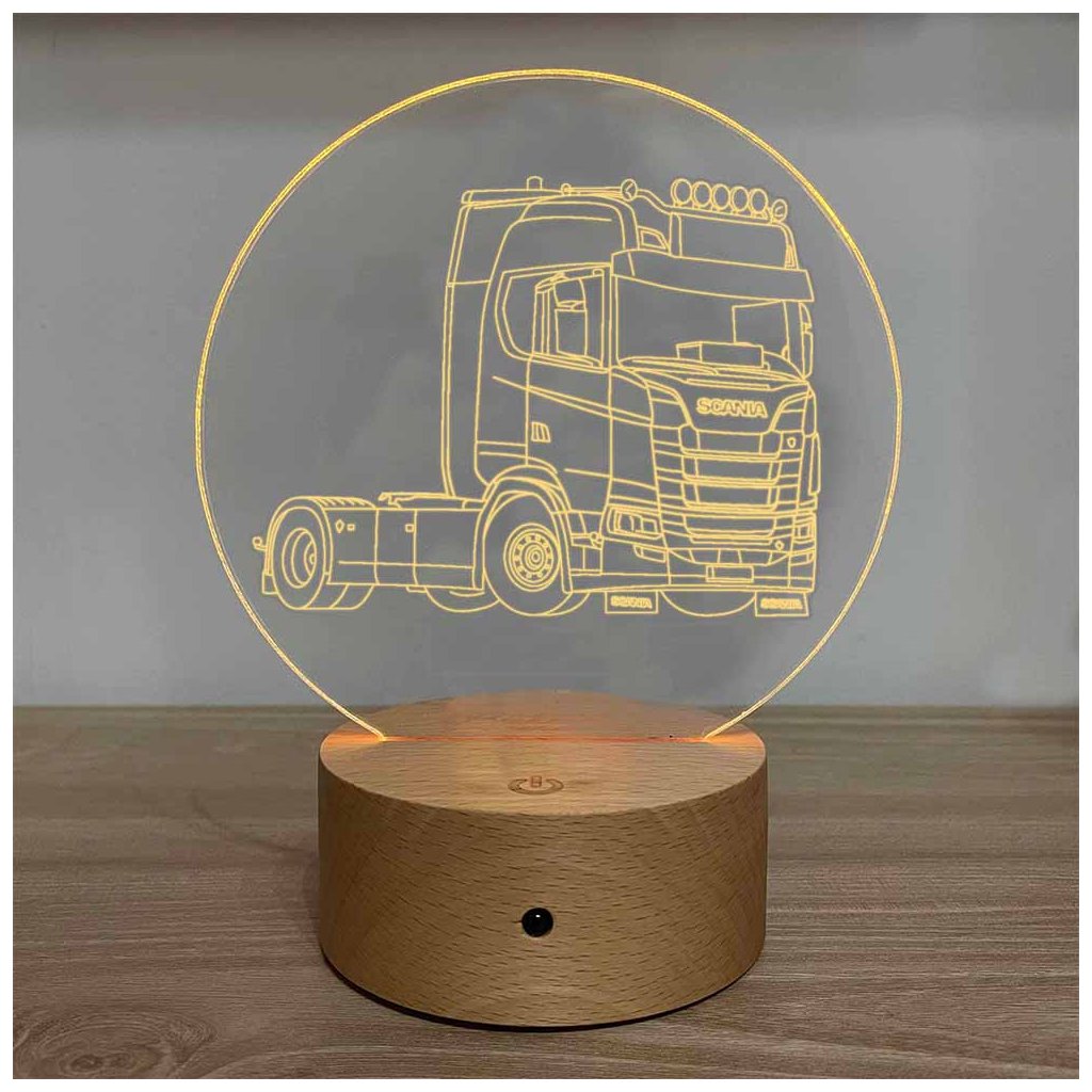 LED lampa v tvare nákladného vozidla Scania S520 s precíznymi detailmi kabíny a podvozku. Poskytuje úsporné osvetlenie, moderný dizajn a je ideálna ako dekorácia pre fanúšikov nákladných áut.