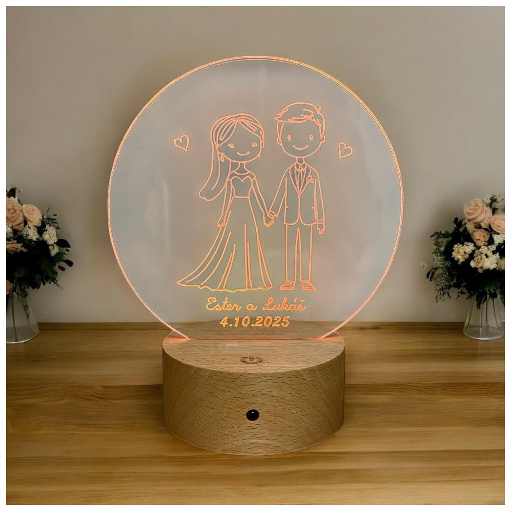LED lampa Svadobný pár – Vlastný dátum a mená