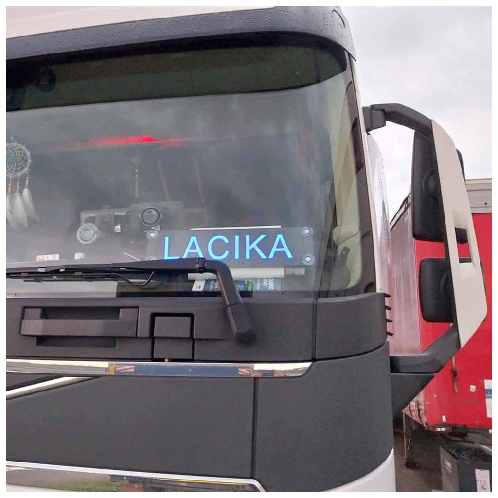 Jednoduchá inštalácia pomocou prísaviek umožňuje upevnenie na sklo alebo iný hladký povrch. Napájanie cez USB-A konektor zaisťuje kompatibilitu s powerbankami, počítačmi alebo autonabíjačkami. Táto menovka je praktická, štýlová a ponúka možnosť úplnej personalizácie pre váš kamión alebo vozidlo.