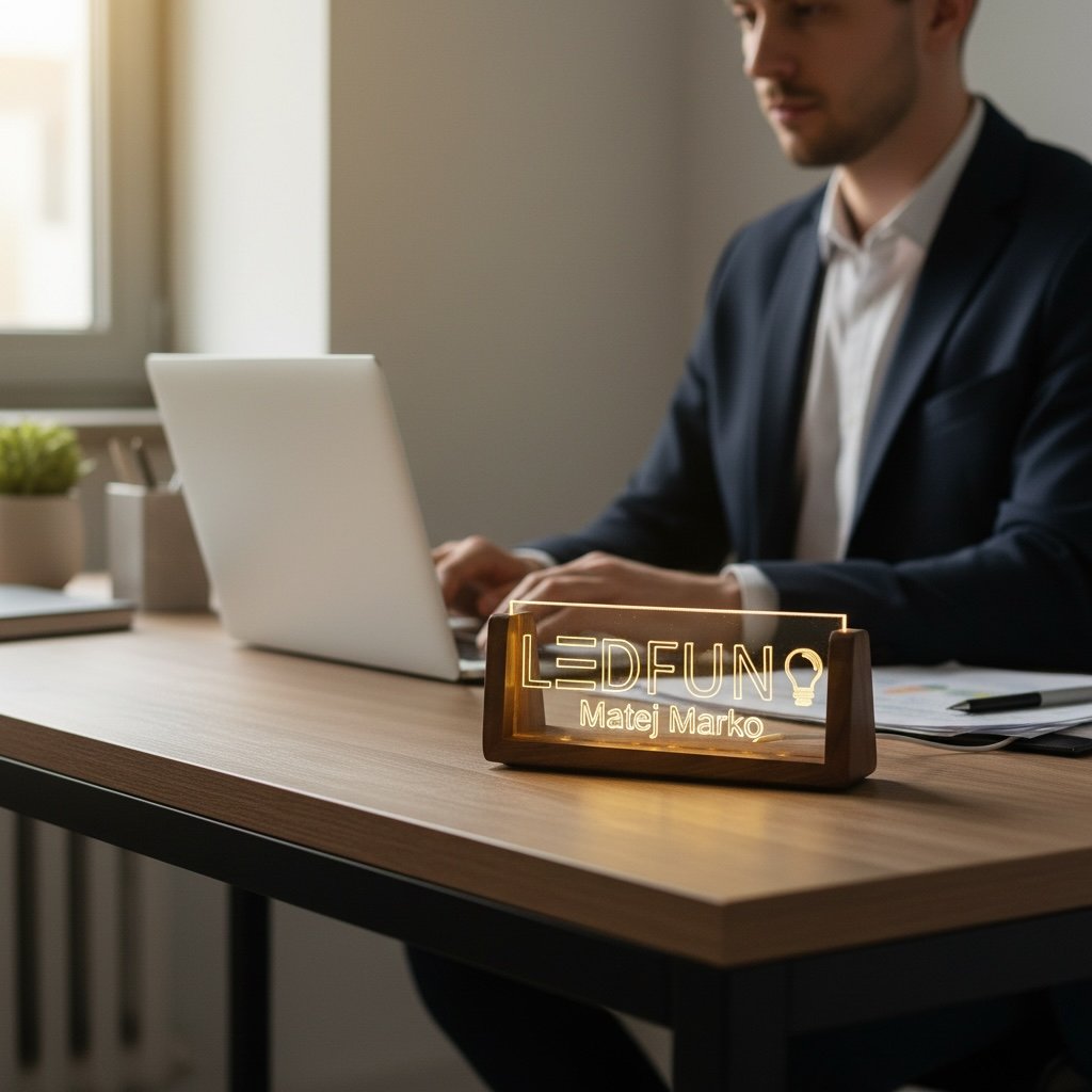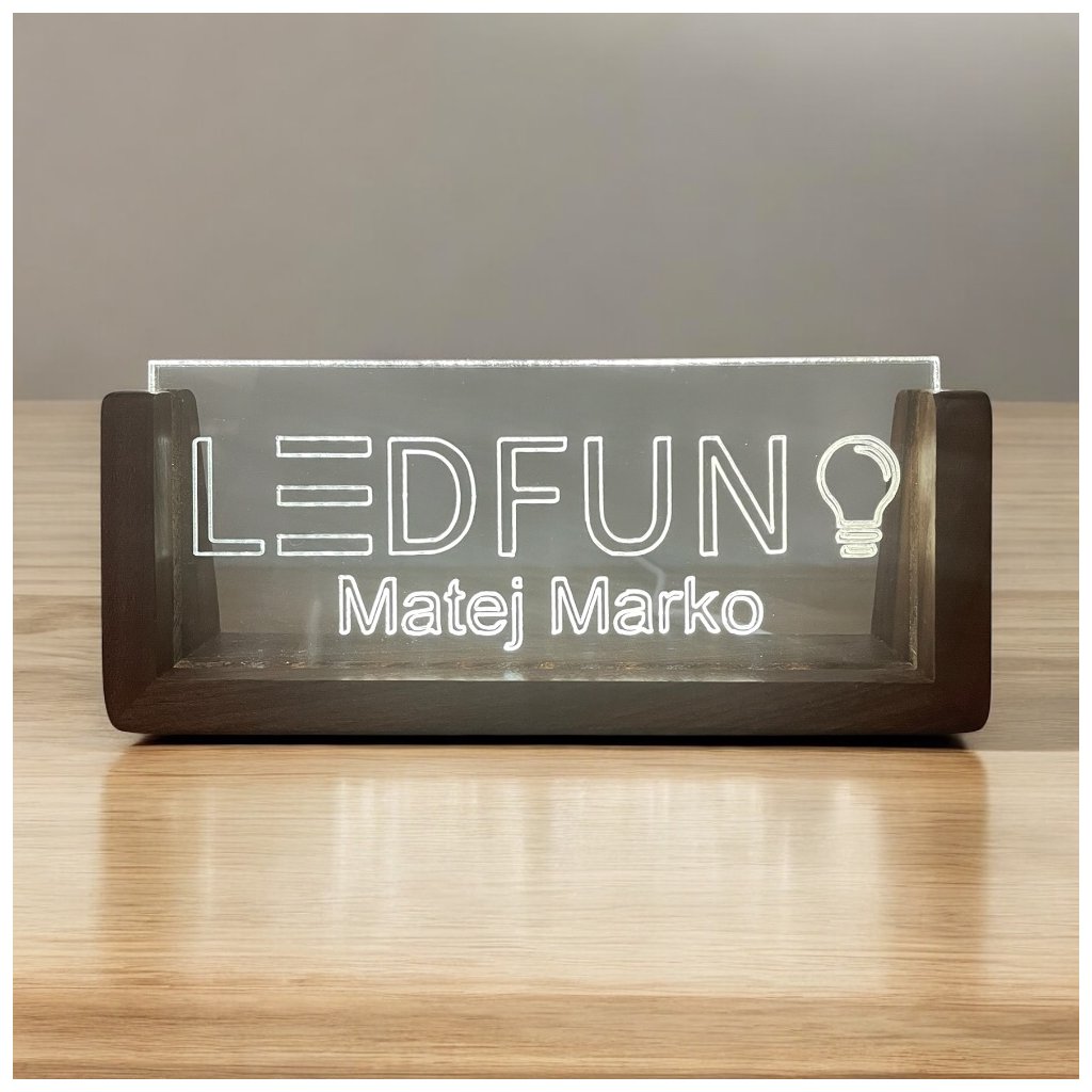 LED menovka je skvelou voľbou ako reprezentatívny doplnok do kancelárie alebo originálny darček s osobným charakterom.