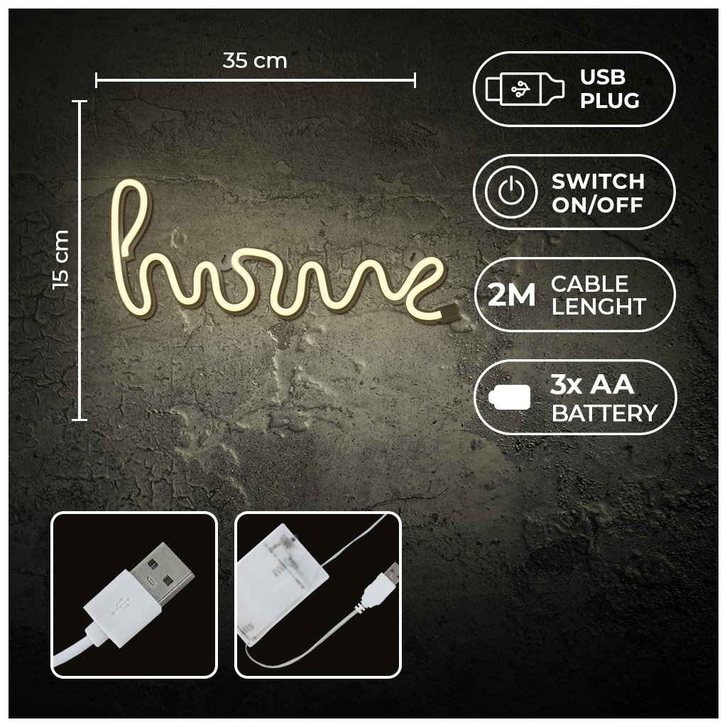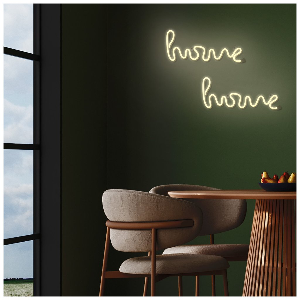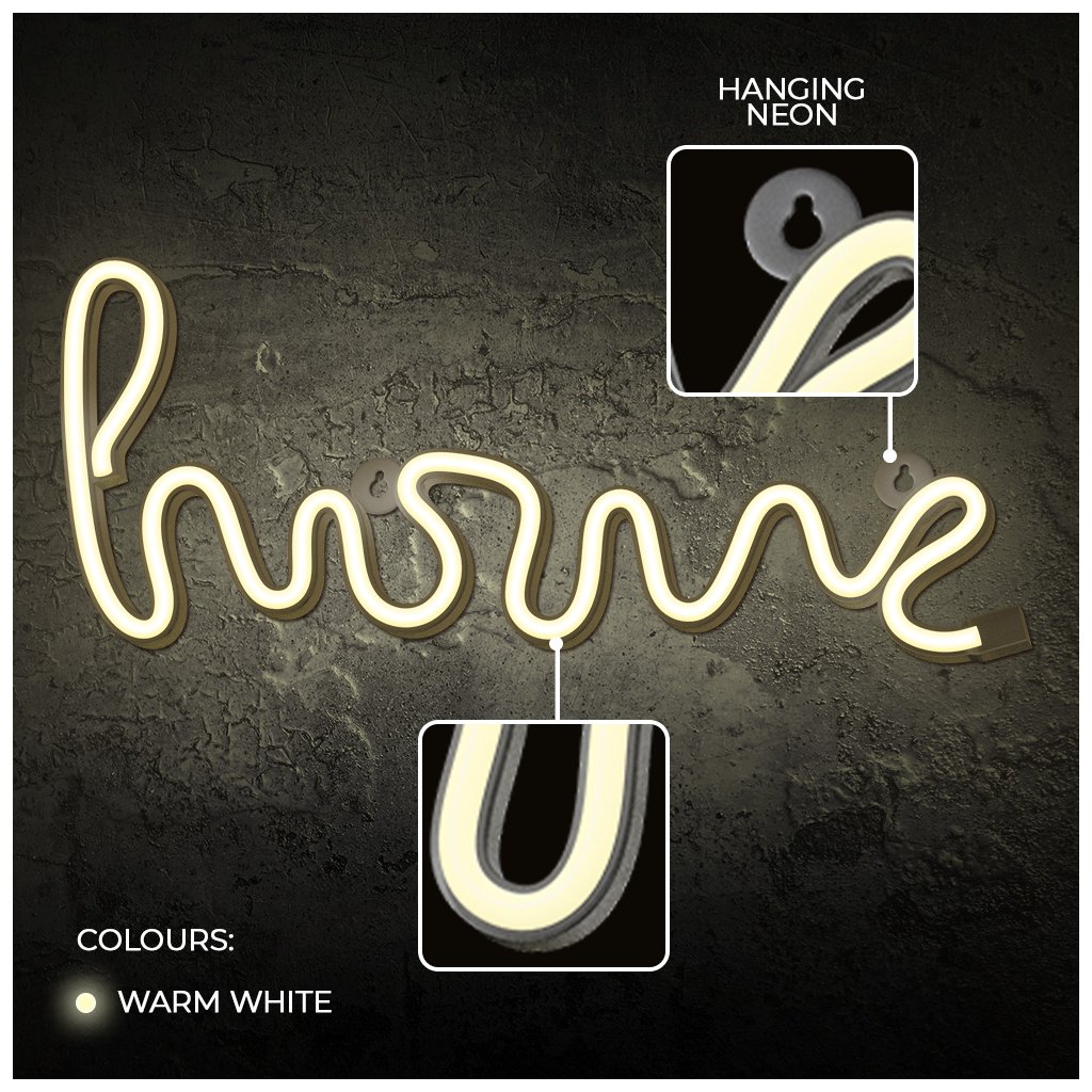 Štýlový LED neónový nápis „HOME“ vytvorí útulnú atmosféru v každom interiéri. Perfektný doplnok do obývačky, spálne alebo chodby, ktorý dodá vášmu domovu moderný a elegantný vzhľad.