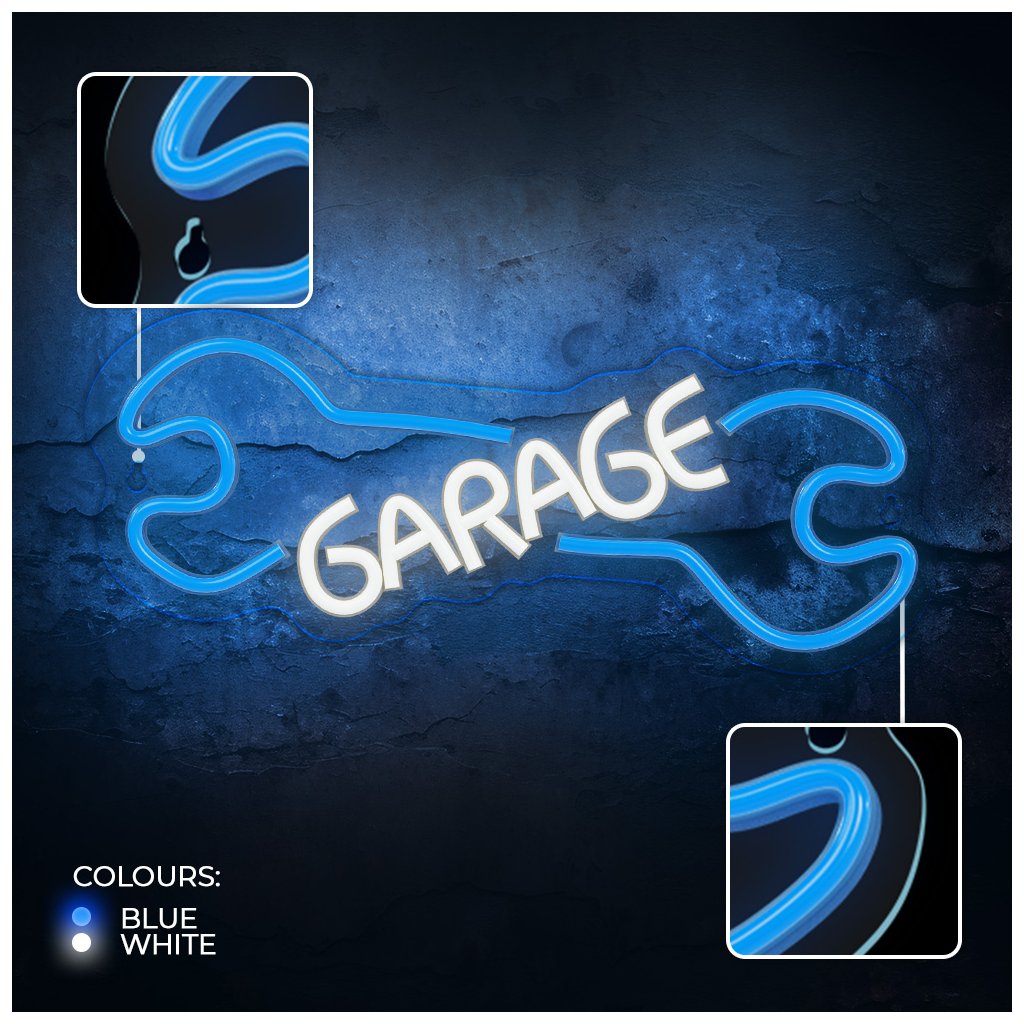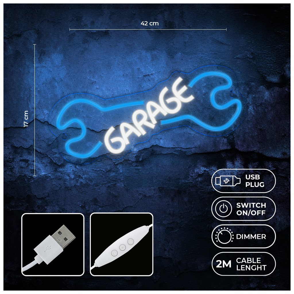 Štýlový LED neónový nápis „GARAGE“ dodá vašej garáži, dielni alebo man cave jedinečnú atmosféru. Energeticky úsporné LED osvetlenie, jednoduchá montáž a napájanie cez USB.
