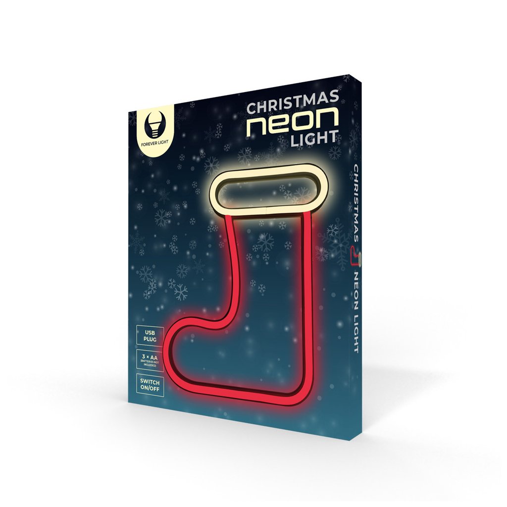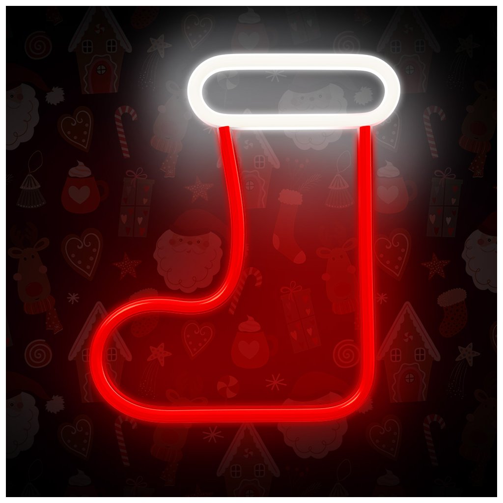 LED Neónový Svetelný Dekor – Vianočná ponožka